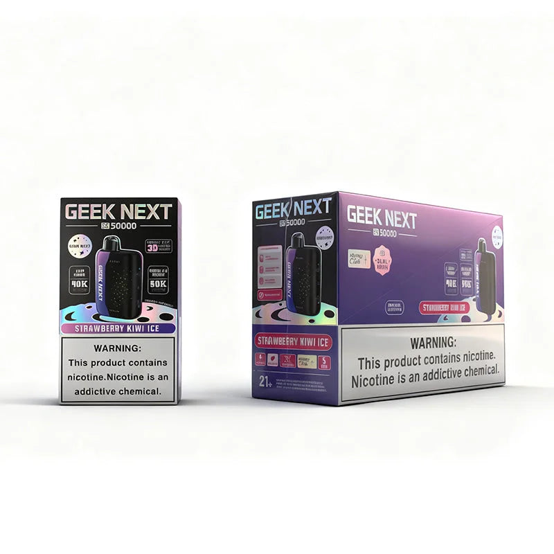 Geek Next 50K Disposable Vape is designed for high output and long-term use. The device delivers up to 50,000 puffs in Regular Mode from a 28 mL prefilled tank. A 1000 mAh rechargeable battery powers adjustable wattage and a 3D curved LED screen. Dual mesh coils maintain consistent flavor delivery. This disposable vape is made in China and available at DisposableVape.